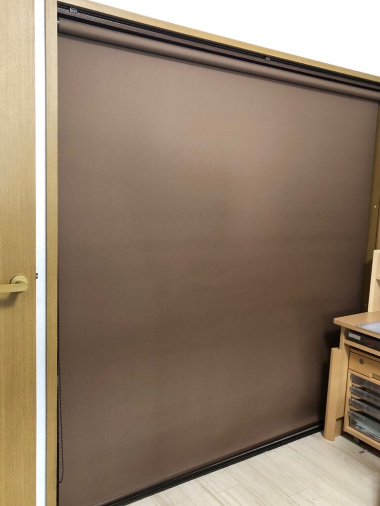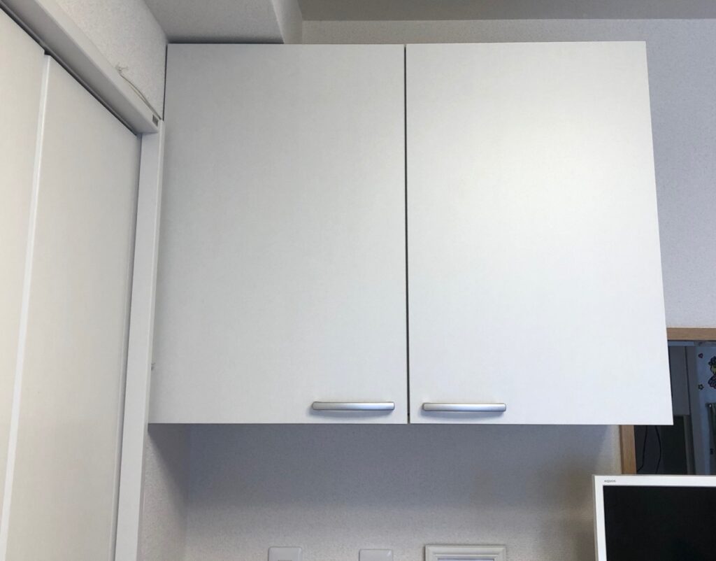 家具を配置するときに、扉が開くスペースを空けておかなくてはいけません。こちらは一大決心をして扉を外して捨てました!扉の代わりに着けたのはロールスクリーンです。